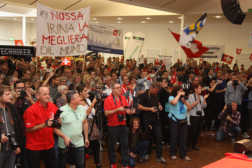 Nonostante il servizio VIP(?) in aeroporto, la delegazione svizzera ha rischiato di arrivare in ritardo al grande ricevimento in suo onore al padiglione 7 della fiera di Zurigo. Il ricevimento è semplicemente travolgente. Circa 1000 tra familiari, amici, colleghi di lavoro e tifosi attendono lo SwissSkills Team, gli esperti e la Direzione della delegazione.